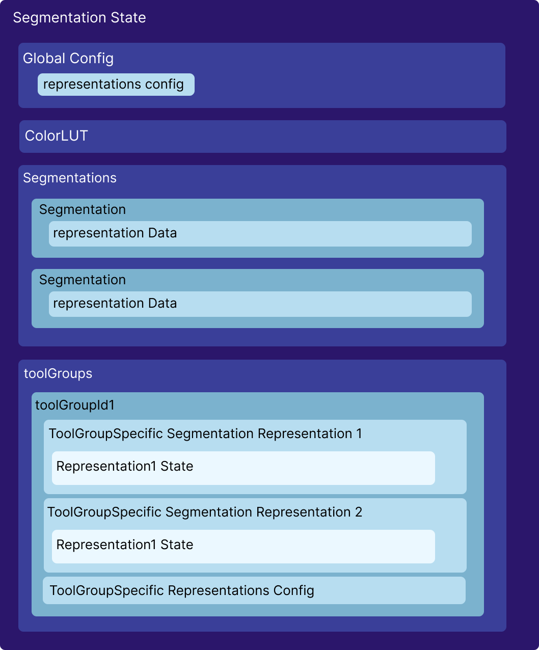 Therefore, the state also stores segmentations and their toolGroup-specific representations separately.